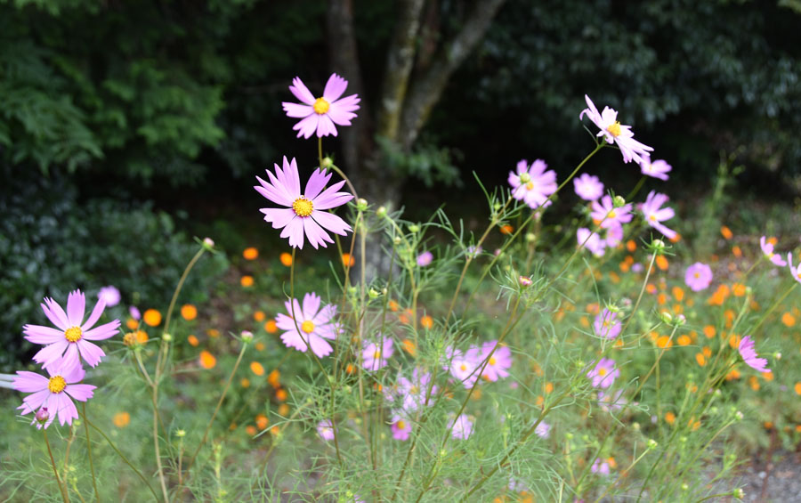 数日前の写真です。道路わきにコスモスが目に留まりました。秋を代表する花です。 別なところにツリフネソウも見られました。もう時期が遅いようです。秋は駆け足で過ぎて行くのかな?