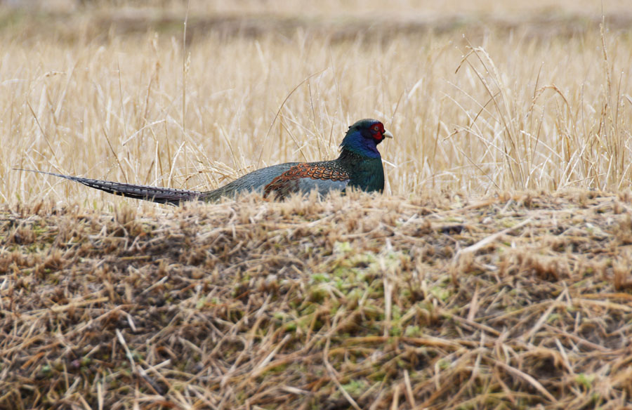 ずっと良い天気が続いていましたが、今日はちょっと時雨れたり雪が舞ったりしました。またお正月以降はしっかり冷え込むようになりました。寒さに負けないように気をつけなくては! 今年初の写真はキジの♂です。見つけた時は畦の上にいましたが、撮ろうとした時は下に降りてしまいました。残念! そしてサクラの枝に水滴がキラキラ光っていました。綺麗と思って写しましたが実際より美しさがダウン。残念! 今年もできる限り草山の自然を写したいと思っています。