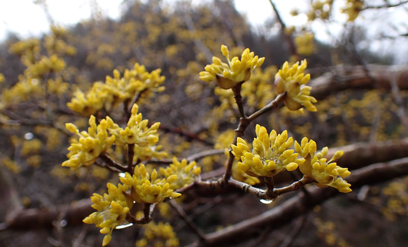 寒い日が続いていますが春はすでにやって来ています。 水仙ロードではぽつりぽつりと咲き始めています。山手のサンシュも蕾が開く寸前。 松隣寺ではセリバオウレンがピークを迎え、バイカオウレンも次々と開花しているようでした。